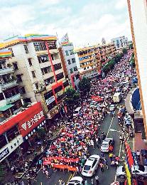 昨晨9時許,包括老嫗和幼童在內的數以千計博羅民眾,舉紅底白字或紅底黃字,寫上“反對垃圾場選址龍潭底,保護東江母親河”、“博羅人民團結起來,保護家園!”等標語的橫額,浩浩蕩蕩走上街頭,抗議在修建垃圾焚化廠。一名示威者對本報稱,抗議人群在博羅文化廣場聚集後,開始遊行示威。在人群試圖向縣政府大樓靠近時,被警方人牆阻擋。抗議人群轉而向惠州市政府方向進發。“我們有人要準備到市政府抗議”,但在濱江路,抗議市民與現場待命的特警衝突,多名市民被特警抬走。據現場多名目擊者向本報稱,最少10多名抗議市民被警方帶離現場。示威行動受到警方阻撓後,大約在中午12時人群才逐漸散去。