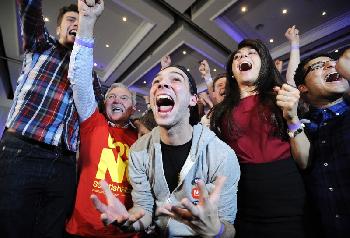 (英國)蘇格蘭歷史性獨立公投結果昨日出爐,反對票以10個百分點差距壓倒獨立派,力保迄立307年的聯合王國完整。英國首相卡梅倫稱,“爭議在這一代告一段落”,同時宣佈將展開大規模憲法改革,向蘇格蘭、威爾士和北愛爾蘭下放權力。獨派領袖薩蒙德表示會接受“現階段”蘇格蘭民眾選擇統一的決定,他並呼吁國民團結,促請英國政府儘快履行放權承諾,隨後宣佈將會下台。