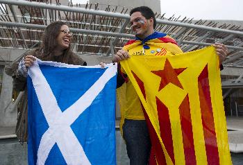 (蘇格蘭)蘇格蘭獨立公投失敗,歐洲多國表示歡迎,其中西班牙政界認為,這次公投結果對分離主義者造成打擊,但鬧獨立的加泰羅尼亞自治區主席馬斯表示,儘管蘇格蘭公投失敗,他將繼續推動舉行加泰羅尼亞脫離西班牙獨立公投。