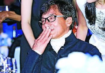 其間向太(陳嵐)跟成龍咬耳朵談了一會兒,兩人互拍膊頭鼓勵又擁抱安慰。范冰冰前晚也在座,成龍還隔空給冰冰飛吻,冰冰也走近給抱抱。成龍雖然忙於應酬,但保持禮貌的笑容,但別人看在眼中,難免覺得是強顏歡笑。