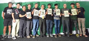 學聯、學民思潮、佔中及泛民昨午5時會見傳媒,宣佈將採取一連串不合作運動,包括議會內外抗爭,並呼吁市民帶帳篷到金鐘紮營繼續留守。此舉觸動政府神經,結果擱置原定今日舉行的對話會面。(圖:香港明報)