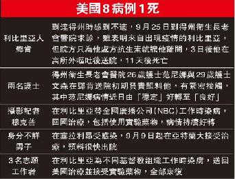 (美國)美國第二宗護士感染伊波拉個案,揭政府抗疫連環失誤。最新染病女護士涉違反指引,在照顧伊波拉病人後仍乘搭公共交通工具出行,而且她搭乘內陸機前輕微發燒,通報疾病控制及預防中心(CDC)但仍獲放行,反映防疫當局一錯再錯。CDC主管承認犯錯,將確保不再發生同類事件。歐美多國領袖表示,今次疫情是國際社會近年最嚴重的公共衛生緊急事態,美國總統奧巴馬緊急召開內閣會議商討對策。