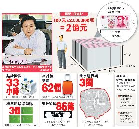 魏鵬遠今年5月被從家中帶走,有消息指,其家中清點現金的點鈔機曾燒壞4台。由於人民幣最高面額是100元鈔票,有傳媒根據百元鈔票的長、寬,估算出1億元鋪開相當於1.67個足球場,則2億元就是超過3個足球場的面積。