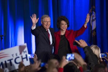 (美國)經過花費逾5000萬美元的昂貴選戰,做了八年參議院少數黨領袖的72歲麥康奈爾(Mitch McConnell)不僅第6次當選參議員,成為肯塔基州連任時間最久的聯邦參議員,還償了當上院內多數黨領袖這個半世紀心願。他承諾新一屆參議院將較目前給予參議員“更大自由”,讓議會正常運作:“我們的首務是查找可同意總統的事。”