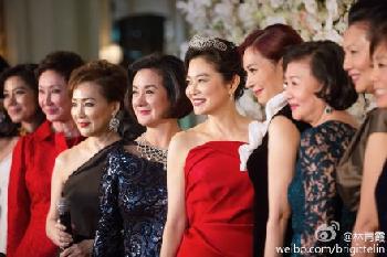 壽星女王林青霞(右二)跟一眾好友合照。(微博圖片)