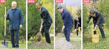出席APEC會議的21名經濟體領袖,昨日上午在京郊雁棲湖畔的APEC亞太伙伴林共植下21株白皮松,體現各經濟體對保護環境的重視和對綠色發展的追求,寓意亞太合作枝繁葉茂、茁壯成長。白皮松是中國特有樹種,具有非常強的抗旱、耐寒、抗污染特性,壽命最長可達千年。(圖:新華社/法新社)