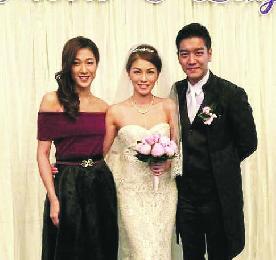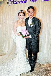 李潔瑩一身性感低胸婚紗與老公黎諾懿大曬幸福,未受負面新聞影響。(圖:香港明報)