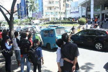 北蘇拉威西省首府萬鴉老也受到地震影響,震感持續約1分鐘,居民在恐慌中逃離建築。(圖:法新社)