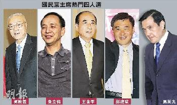 (台灣)台灣總統馬英九昨請辭國民黨主席一職,為國民黨在“九合一”縣市長選舉大敗負責。前天提出辭職的副主席吳敦義經馬挽留後改變初衷,留任副主席兼代理黨主席,國民黨已決定加速黨主席補選,料明年1月下旬產生。有力問鼎黨主席的,除吳敦義外,還有立法院長王金平、將卸任台北市長的郝龍斌以及新北市長朱立倫。學者認為,馬英九辭職後,國民黨內意見或變多元,不是壞事,但要贏得2016年總統選舉則仍困難。