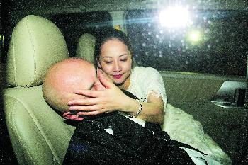 張茜用手為老公張衛健擋醉態,不過健仔已變成“醉街演員”了!(圖:香港明報)