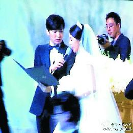 婚禮上的晟敏顯得有點緊張及嚴肅,新娘由家長引領出場。當她說誓詞時,晟敏細心地幫妻子拿著麥克風,十分甜蜜。