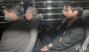 許仕仁(前排遠)、關雄生(前排近)、郭炳江(後排遠)和陳鉅源(後排近)被判囚5年至7年半後,由囚車押返監房,正式開始牢獄生涯。陳雙手被鎖上手銬,前天坐囚車時則與郭炳江“扣在一起”。(圖:香港明報)