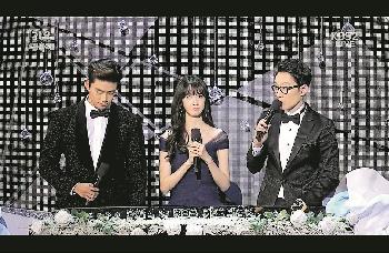 2PM澤演(左)、少女時代潤娥(中)及李輝才(右)擔任KBS歌謠大典司儀,開場時大會突然播錯歌,音響連番出錯,電視台遭歌手指摘。