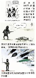 世界各地的漫畫家也以筆桿聲援同業和譴責恐襲,澳洲《坎培拉時報》漫畫家波普(David Pope)畫了一名漫畫家躺在地上,旁邊拿著步鎗的蒙面鎗手說:“是他先動手(he drew first)的”。在印度漫畫家曼朱(Manjul)的畫中,一架飛機撞向尖頂變成筆尖的巴黎鐵塔。英國《每日電訊報》亞當斯(Christian Adams)的漫畫完全留白,只有一行標題寫著:“極端份子認可的漫畫。”(香港明報)