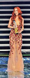 謝安琪形象玩新意,紅髮加透視裙非常搶鏡。(圖:香港明報)