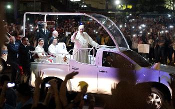 教宗其後乘車前往下榻地點,沿途數以萬計民眾夾道歡迎。菲國政府特別將教宗訪問期間定為全國公眾假期。