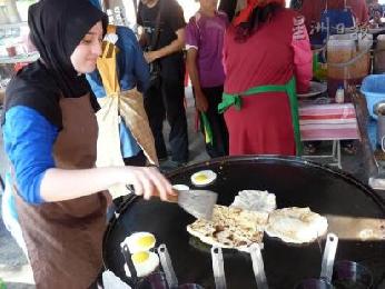 靠近新邦瓜拉亞羅士打技術中學的一個路邊攤檔,從去年8月開始出現一名戴著頭巾的西洋美少女,有板有眼在烤製印度煎餅,成為地方上一道亮麗景觀。