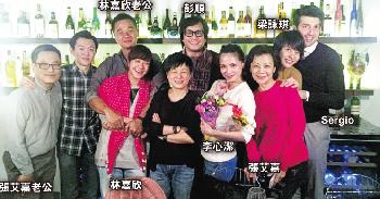 李心潔39歲生日,好友梁詠琪、林嘉欣及師父張艾嘉一雙一對到賀。(微博圖片)