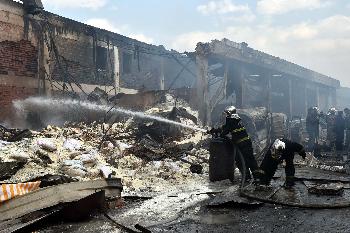 (中國)雲南昆明一農產品商貿中心昨晨發生火災,造成9人死亡,10人受傷,50多間商舖被燒毁,火場面積約3300多平方米。