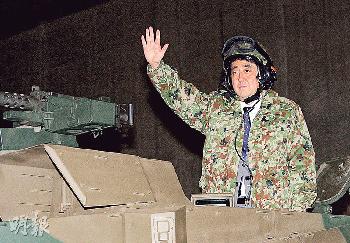 有分析認為,日本首相安倍晉三有意藉早前人質遇害事件,令國家增加海外軍事參與,擺脫和平憲法的束縛。圖為他前年戎裝乘戰車參與陸上自衛隊活動。(資料圖片)