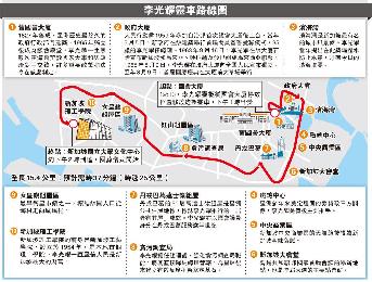 (新加坡)新加坡建國總理李光耀今日國葬,官方以最高規格送別這名星洲之父,舉國同哀,包括中港台的數十個國家地區代表出席。李光耀靈柩午後由炮架靈車緩緩拖行,走完人世最後15公里路程,回首其奮鬥一生打造的閃耀之城,亦讓其一生記掛的星洲人民夾道相送。移靈隊伍途經多個地標,可說代表了其人生和政壇足迹。日暮獅城,5時15分國葬禮畢,靈柩隨即送往火化,一代巨人化為輕煙。
