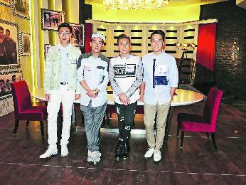 陳小春(左二)被三位主持陸浩明(左一)、衛志豪(右二)與區永權(右一)迫供下出賣兄弟。(資料圖片)