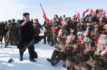 專家憂慮朝鮮核武儲備充足將加劇美國在亞洲兩大盟友日本和韓國對安全的擔憂,引發與朝鮮的核競賽。圖為朝鮮官方週日發佈的相片,朝鮮軍隊機師在白頭山歡迎領導人金正恩。(圖:法新社)