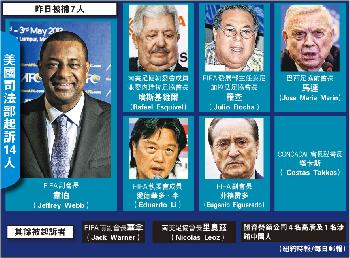 這次拘捕源於美國聯邦調查局(FBI)的調查。3名知情官員向《紐時》透露,FIFA由1990年代起已存在廣泛貪污問題,由世界杯主辦權到市場營銷和轉播權協議,都有人從中收賄。起訴書涉及14人(見表),他們涉嫌干犯詐騙、洗黑錢、敲詐等罪行。除了FIFA高層,涉事的還有美國及南美體育營銷高層,他們被控支付逾1.5億美元(11.7億港元)賄款和回傭,換取大賽事轉播權等。