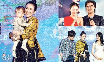 及後章子怡除下假肚,又母愛氾濫地把戲中的小演員抱在懷裡,但仍見她的腹部隱約隆起。略為發福添孕味的章子怡,全程流露幸福笑容,她提及電影的宣傳片中,汪峰還獻聲為其配音,因為配音當天汪峰亦在錄歌,於是她就拉對方來幫手,被劇組讚她相當有面子。導演補充說:“他們都是一家人了。”