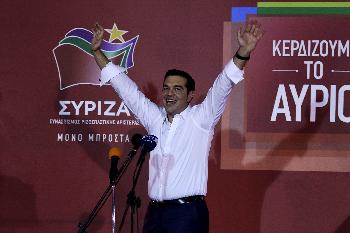 (希臘)希臘激進左翼聯盟(Syriza)成為週日(20日)國會選舉贏家,黨魁齊普拉斯將再度出任總理。他在首都雅典市中心發表勝選感言,矢言要做滿4年任期,讓近6年5度舉行大選的希臘進入穩定的新階段。