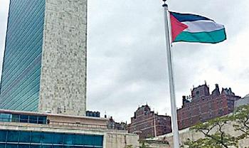 (巴勒斯坦)巴勒斯坦國旗在香港時間今日凌晨以觀察員國身份在聯合國總部首次升起,被視為巴人爭取全面立國里程碑,巴勒斯坦總統阿巴斯事前在美國新聞網站《赫芬頓郵報》撰文,形容升旗這天會是“最令人激動和自豪的一天”。主持升旗禮前,阿巴斯昨在聯合國大會演說中宣佈,既然以色列繼續違反協議,巴勒斯坦也不再受1993年《奧斯陸協議》約束。