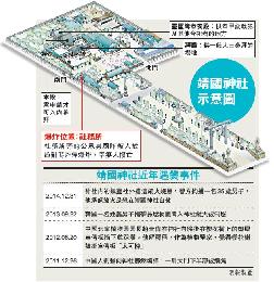 (日本)日本供奉多名二戰甲級戰犯的東京靖國神社昨日在即將舉行慶典之際發生炸彈爆炸,神社內一座男廁受破壞,牆身和天花受損,現場遺下電池、電線等物品,另有一件疑似爆炸品,幸未造成傷亡。當局正調查事件是否為針對靖國神社的恐怖襲擊,正追查一名事發前出現在男廁外的男子。當局事後增派人手保護首相官邸和各國使館等重要設施。