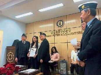 (紐約.留天佑報導)紐約華裔退伍軍人會(Lt. B. R. Kimlau Chinese Memorial Post 1291)昨日在會所舉辦聖誕慶祝餐會,數百會員及親友參加。活動上,會方向10名成績優異的會員及軍人後裔頒發年度獎學金,以及向5人頒發司徒旺中國文化獎學金。
