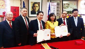 駐紐約台北經濟文化辦事處華僑文教服務中心主任王映陽應邀到場主禮,她並向兩位主席頒發中華民國僑務委員會委員長陳士魁的賀函(圖)。紐約中華公所主席伍銳賢及所屬下7大僑團代表均與會,向新屆主席及各科職員表示祝賀。