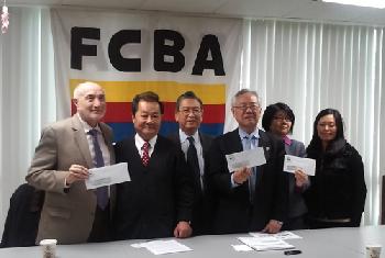 為感謝紐約社區對原國際銀行的支持,保富銀行於此特選擇了4個對紐約社區頗有貢獻之愛心社團,分別為:United Way Of New York City,華策會福壽老人中心,亞洲人平等會及布碌崙華人協會,每個社團捐贈5000元共兩萬元善款,希望這4社團善嘉利用嘉惠於社區,由保富銀行總經理胡師功(左三)代表該銀行頒贈4社團代表,昨日在法拉盛華商會舉行捐贈儀式,出席活動法拉盛華商會總幹事杜彼得(左二)高度讚揚保富銀行的善心義舉,希望社區更多企業團體效法這種「取之於社區,用之於社區」的企業精神,使法拉盛社區更加繁榮興旺。