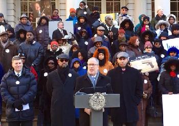 斯靜格和國會眾議員傑利斯(Hakeem Jeffries)昨午召開聯合記者會,他們指出,除了聯邦政府以外,紐約市府就是全國最大的槍械購買單位,敦促市府利用經濟影響力,迫使更多槍械製造商,生產「智能槍枝」,這些槍枝的設計,僅限特定人士操作,如有槍械落入其他人手中,會完全上鎖,不能使用,相信能夠為市面提供一個安全槍枝的選擇。