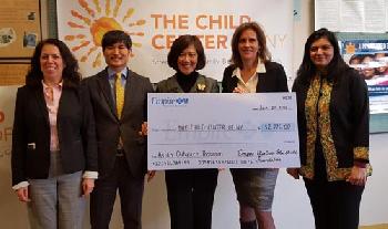 捐款儀式20日在法拉盛的紐約兒童中心舉行,由帝國藍十字藍盾健保公司代表艾奎諾(Stella Aquion)代表公司將三萬多元支票捐給紐約兒童中心,由該中心執行長唐娜麗(Traci Donnelly)代表接受。