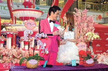 嘉穎跟Grace昨日獲邀首次以情侶檔拍住上“搵銀”,為商場賀年佈置揭幕。嘉穎穿上桃紅西裝跟白色性感Tube Dress的Grace相映成趣。兩人合照時不時深情對望,大曬恩愛。主持人打趣叫他們惜一惜,但兩人尷尬不肯就範,嘉穎說:“我們入後台培養一下感情先。”最終成功耍開要求,但始終避不開玩親密遊戲,Grace餵嘉穎食糖蓮藕,寓意甜甜蜜蜜、佳偶天成;兩人又十指緊扣合力入利市封,恍如結婚時的“玩新人”環節,嘉穎笑指比“玩新人”仁慈得多,但就拒絕惜惜,留待結婚當日才做。