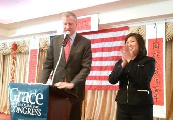 市長白思豪的出現為籌款活動掀起高潮,白思豪首先用中文恭祝華裔民眾新春快樂,表示目前紐約市亞裔人口已達15%,並匯報最新暴風雪紐約市情況,宣佈紐約市因風雪暫停換邊停車至2月1日,獲得在場民眾熱烈掌聲。