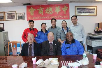 (紐約.留天佑27日報導)市警總局社區服務組組長格里芬督察聯同杜淑嫻警官,昨(26)日到訪華埠,訪問了紐約中華總商會(圖),受到總商會于金山董事長、李可喬會長以及李氏總分所李國威、李楚賢主席等的熱情接待。