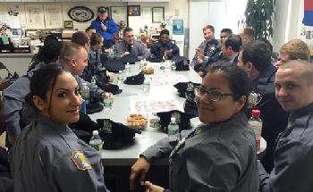 (紐約.羊展恬2日報導)法拉盛轄區市警109分局19位新警員昨日在警探歐唐納(Kevin O'Donnell)的帶領下,前往法拉盛華人工商促進會拜會,受到華商會總幹事杜彼得的熱烈歡迎。
