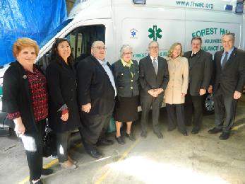 (紐約.羊展恬3日報導)包括國會眾議員孟昭文、州參議員史塔文斯基(Toby Ann Stavisky)、紐約市主計長斯靜格(Scott Stringer)、皇后區區長凱茲(Melinda Katz)以及市議員科絲蘿維茲(Karen Koslowitz)等民選官員,日前齊聚皇后區森林小丘志願者救護車軍團(Forest Hills Volunteer Ambulance Corps)舉行一項揭幕儀式,共同慶祝新救護車加入服務的行列。