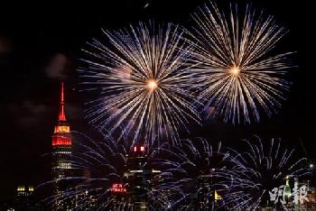 (明報8日訊)美國紐約曼哈頓週六(6日)舉辦多個慶祝農曆新年活動,其中哈德遜河上空晚上的煙花匯演,以及帝國大廈頂部同時亮起紅色和金色燈光慶祝活動最為壯觀。