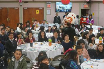 (紐約.留天佑8日報導)為歡慶農曆春節,台灣會館與駐紐約台北經濟文化辦事處教育組,在法拉盛舉辦大紐約地區台灣同學會春宴(圖),邀請紐約州、新澤西、賓州和康乃狄克州的台灣留學生共度歡慶農曆猴年春節,共約200人齊聚一堂,說笑逗唱、熱鬧無比。