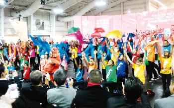 由中國中央美術學院聯合美中文化協會舉辦的第二屆「歡樂春節‧藝術中國匯」系列活動6日在曼哈頓賈維茨中心開幕。圖為公校學生在演出中國特色舞蹈。(圖:羊展恬攝)