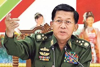 (緬甸)緬甸傳媒引述軍方消息稱,軍方總司令敏昂萊(Min Aung Hlaing,圖)和其副手梭溫連任現職5年,顯示這名軍頭在軍方權力繼續穩固,並容許他在與反對派領袖昂山舒吉商討總統人選一事上有更大話語權。另一方面,即將卸任的總統登盛,已決定取消本週訪美行程,以觀察權力交接過程。(香港明報)