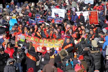 儘管週末氣溫創下百年來最低,但仍不減民眾慶祝猴年到來的熱情。華埠新春大遊行,在喧天的鑼鼓聲中,巨龍飛騰,醒獅躍起,十多輛裝扮別緻新穎的花車以及數個載歌載舞的遊行方陣,沿著勿街行至且林士果廣場,轉入東百老匯,再拐進愛烈治街,一直慢行到格蘭街及科西街結束。