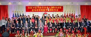 (紐約.留天佑24日報導)美國台山沖蔞同鄉總會假華埠舉行第七屆職員就職暨敬老頒發獎學金聯歡晚會(圖),中國駐紐約總領事館副總領事鍾瑞明,領事趙宇等與會,與會員嘉賓共900多人同歡。