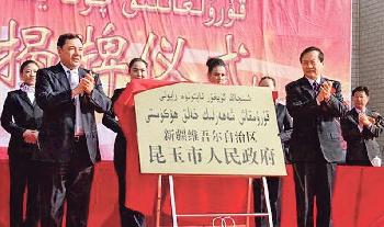 (中國)新疆自治區昆玉市成立大會暨揭牌儀式,上週五(26日)在新疆生產建設兵團第14師224團團部玉山鎮舉行。此市也成為1954年成立的新疆兵團按照“師市合一”模式管理的第9座城市,屬縣級市。