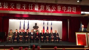 新舊主席交接儀式昨午2時,在公所中山紀念堂召開,除屬下60僑團僑領外,駐紐約台北經濟文化辦事處、華僑文教服務中心,紐約市主計長、市議員顧雅明等政府官員均前來祝賀,還有來自布碌崙、法拉盛的僑界代表,冠蓋雲集,場面盛大。